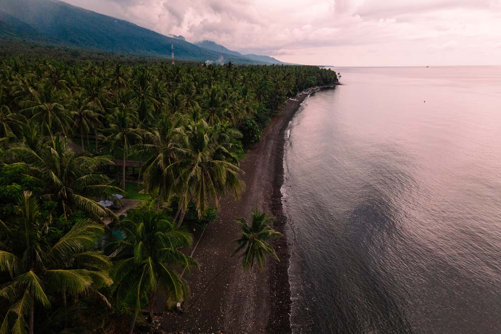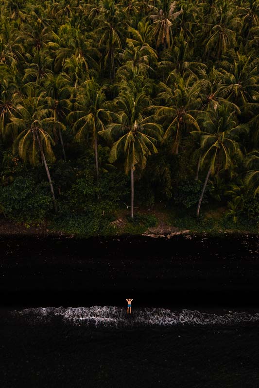 Der schwarze Sandstrand bei Gretek hat mir persönlich am besten auf ganz Bali gefallen. Hier sind keine Touristen und ein Palmenwald endet direkt am Meer. Hier kannst du toll entspannen und traumhafte Bilder schießen.