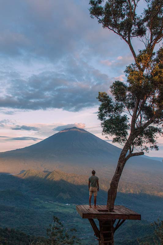 Sicherlich hast du schon mehrfach die wunderschönen Bilder von den traumhaft gelegenen Plattformen mit einem Vulkan im Hintergrund gesehen. Alle diese Bilder sind an Lahangan Sweet aufgenommen worden und wenn du auch genau so ein Foto haben möchtest, dann bist du hier genau richtig.